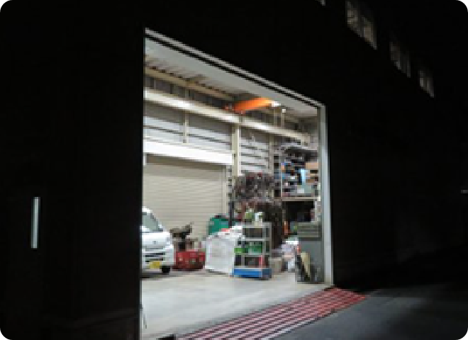 夜間には煌々と輝くその部屋は、シャッターを潜ると、まるで昼間のような明るい空間になっております。